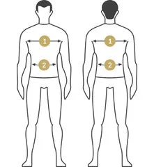 Obwód klatki piersiowej – centymetr krawiecki powinien przebiegać wokół ciała, przez najbardziej wystające punkty łopatek i klatki piersiowej.